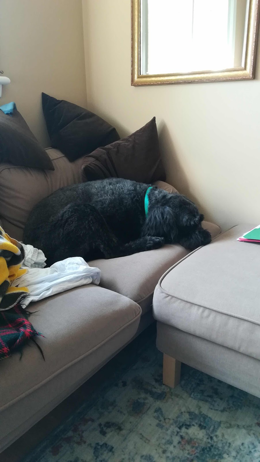 I kept him company. On the very comfy sofa.
